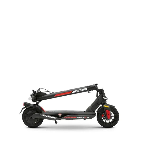 Il monopattino Ducati Pro 3 è strutturato con un telaio in lega di magnesio che è un materiale leggero e resistente ed offre ottimo assorbimento delle vibrazioni. Il telaio ripiegabile consente di prendere meno spazio quando non lo si utilizza e di caricarlo facilmente in auto o sui mezzi pubblici. È equipaggiato di campanello, parafanghi e cavalletto posteriore. La sua struttura solida lo rende adatto a supportare in modo adeguato un peso fino a 100 kg. Dotato di display LED da 3,2” che consente di monitorare e gestire tutte le impostazioni di guida, con un’ottima usabilità e visibilità, riducendo al minimo qualsiasi distrazione durante la guida. Nel display è integrata una porta di ricarica USB, che consente di ricaricare comodamente i propri dispositivi mentre si è in marcia. Ha un’accensione innovativa tramite tecnologia NFC che consente di essere avviato soltanto dal proprietario in possesso del chip. La pedana è stata rivestita con uno strato di gomma che aumenta l'attrito tra il piede del guidatore e la pedana.