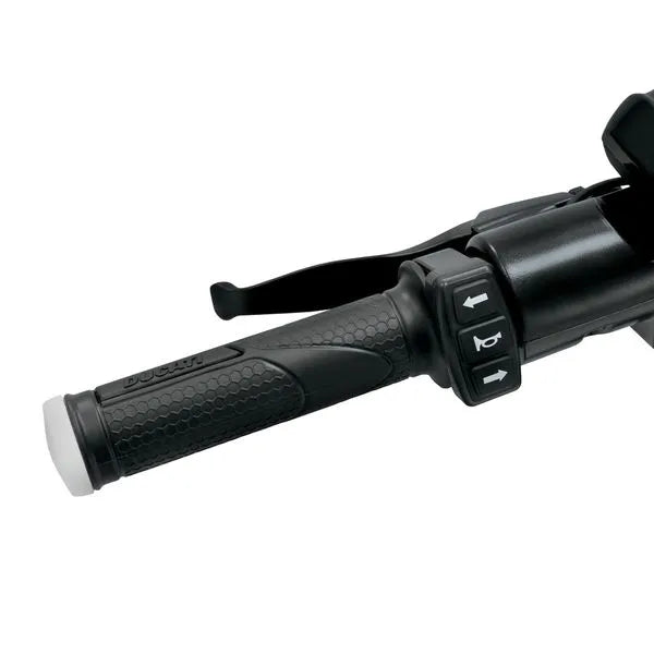 Il monopattino Ducati Pro 3 ha un motore brushless da 350 W di potenza. La tecnologia brushless in questo genere di veicoli è tra le più performanti perché riduce di molto lo spreco di energia e aumenta l’efficienza. Questo motore può raggiungere una potenza di 515 Watt. Infatti può affrontare senza difficoltà salite con una pendenza di 20°. Il monopattino Ducati Pro 3 ha quattro modalità di guida modificabili attraverso la pulsantiera presente sul manubrio. La velocità massima è di 25 km/h e ha una buona accelerazione. Quindi è ottimizzato per gli spostamenti nel traffico cittadino. È dotato di cruise control per il mantenimento della velocità. Il motore posteriore su un monopattino elettrico conferisce una maggiore stabilità e una spinta più pronunciata specialmente in partenza e nelle strade dissestate o in pendenza.