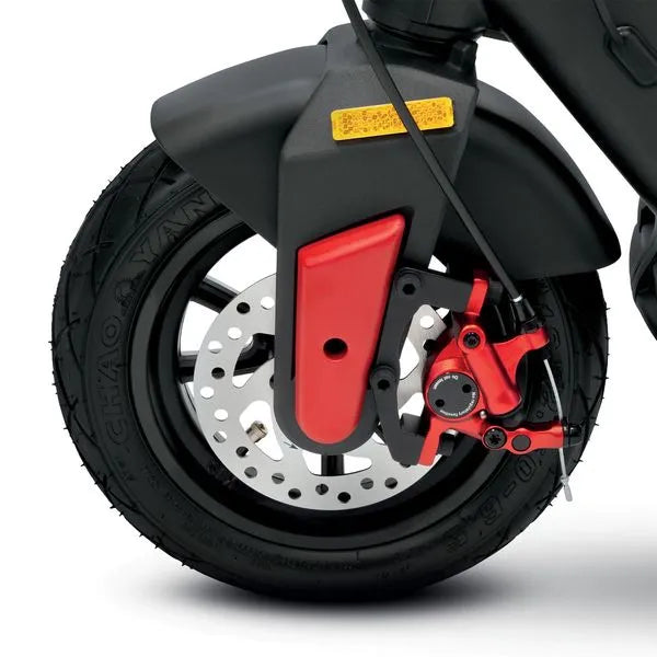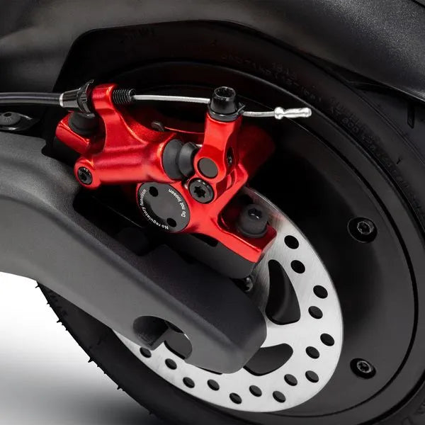 Il monopattino Ducati Pro 3 utilizza un doppio sistema di frenata. Abbiamo un doppio freno a disco, anteriore e posteriore, così da frenare in maniera solida e sicura anche su una frenata improvvisa. Di solito si utilizza il freno posteriore per rallentare gradualmente. Oppure si utilizzano entrambi quando si vuole frenare all’improvviso. I freni sono azionati da due leve differenti. Questo sistema di frenata rende gli stop rapidi ed efficienti anche sul bagnato. Il monopattino Ducati Pro 3 è corredato con due luci led, una posta nella parte anteriore e una posizionata nella parte posteriore. Sono molto potenti e rendono il monopattino ben visibile sulla strada. Inoltre il faro anteriore illumina senza difficoltà la strada di fronte a noi, così da permetterci di guidare con maggiore sicurezza. L'illuminazione notturna viene migliorata con dei catarifrangenti situati sui lati del telaio e sulle parti frontali del monopattino. Le gomme hanno una buona presa sull’asfalto e evitano di scivolare sul bagnato, grazie al loro grip. Le ruote hanno delle buone scanalature, che filtrano l’acqua presente sulla strada. Sono di tipo tubeless, non hanno aria al loro interno e non richiedono alcun tipo di manutenzione. Ducati Pro 3 ha un certificato di impermeabilità IP54, che attesta come il veicolo sia protetto dall’acqua.Inoltre la gomma riesce ad attutire una buona percentuale delle vibrazioni che provengono dal manto stradale.