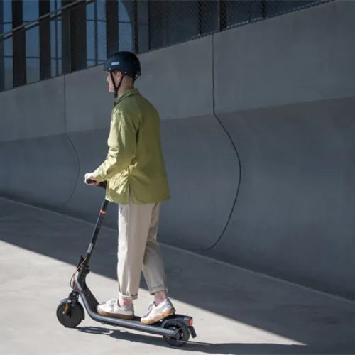 La batteria da 220 Wh integrata nel manubrio si ricarica completamente in circa 3,5 ore, offrendo fino a 25 km di autonomia reale in modalità Eco e 20 km in Sport (test effettuati con carico di 75 kg, 25 °C, velocità media corrispondente ai limiti delle modalità)¹. Il BMS intelligente ottimizza il ciclo di carica e scarica, bilanciando le celle e prolungando la vita utile del pacco batteria. L’app Segway-Ninebot, scaricabile gratuitamente, permette di monitorare in tempo reale lo stato della batteria, abilitare il blocco elettronico, aggiornare il firmware e regolare i parametri di erogazione energetica per adattare l’autonomia alle proprie necessità. Grazie alle modalità di risparmio energetico e alla gestione termica, l’E2 Plus E II mantiene prestazioni costanti su tragitti di media lunghezza, risultando ideale per il tragitto casa-ufficio, gite nel weekend e brevi esplorazioni urbane.